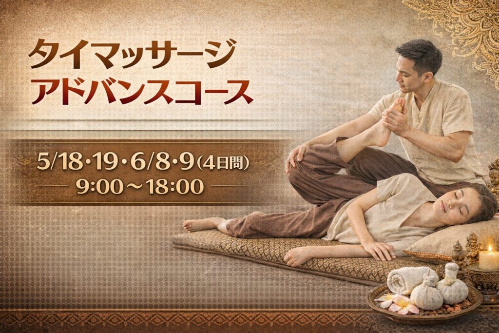 3/8~11日(4日間)タイマッサージアドバンスコースを開講…続きを読む